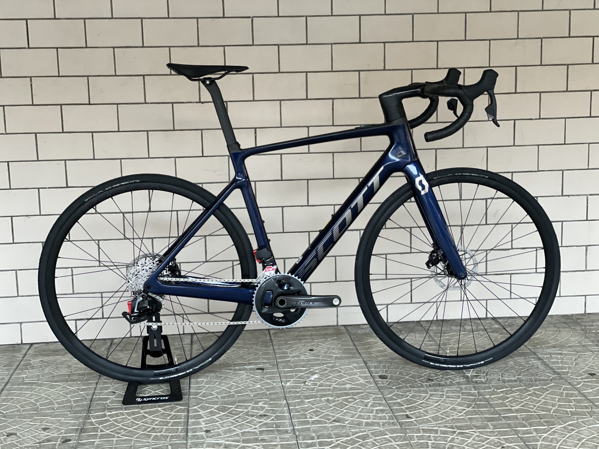 Quadro Addict RC Disc em Carbono HMX Forqueta Addict eRIDE HMX SRAM RIVAL eTap AXS de 24 velocidades Motor Mahle com Torque max de 60Nm, até 435Wh Rodas Syncros Capital 2.0 25e Disc Pneus Schwalbe One Componentes Syncros em Carbono/Alumínio Peso Aprox.: 11.80Kg