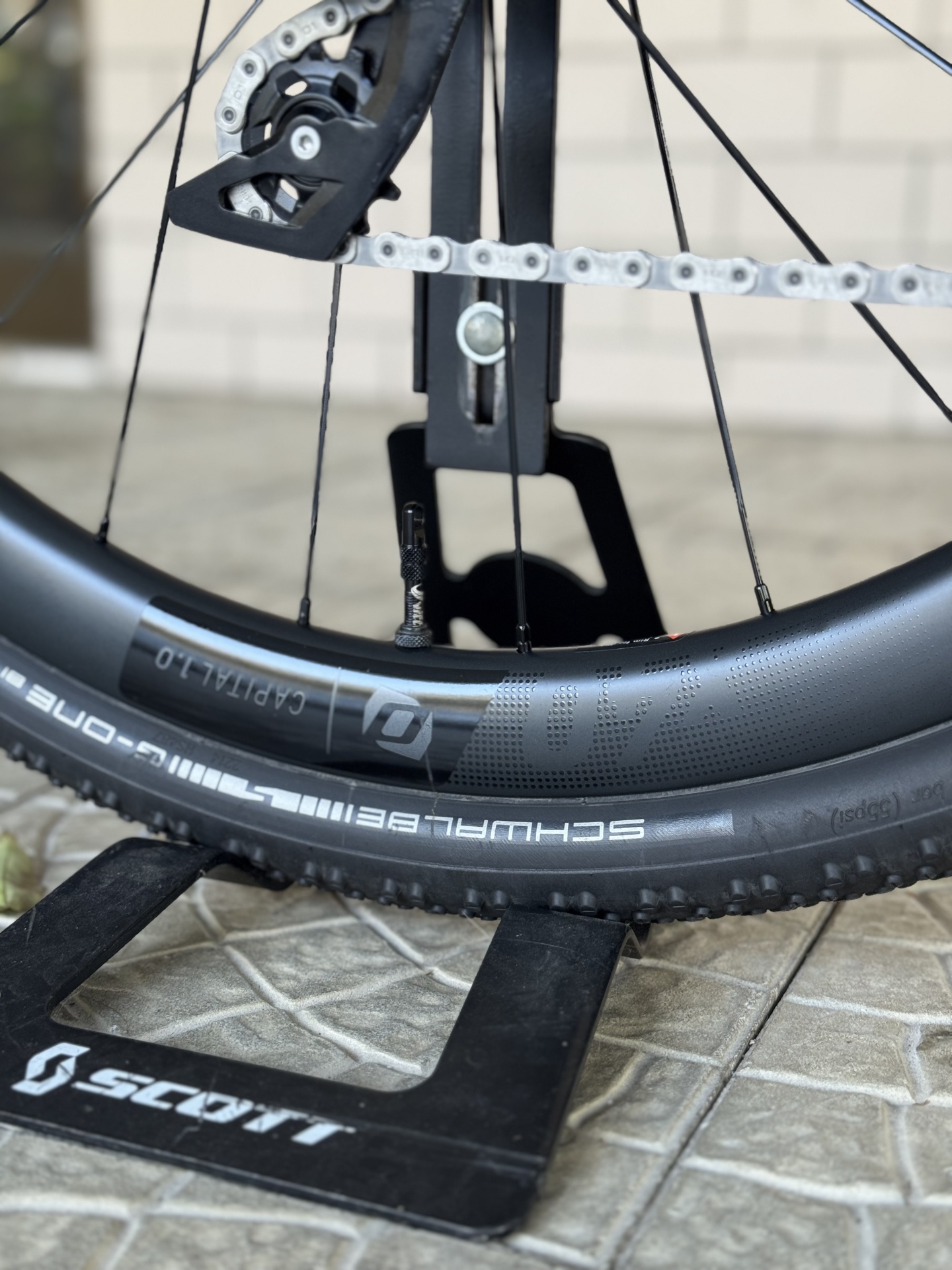 - Pneus Schwalbe G-One Bite - com mousses e montagem tubeless.