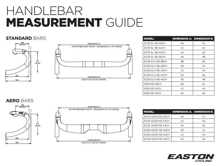 Com o EC70 Aero, você ficará confortável enquanto reduz o arrasto. Graças ao perfil superior achatado com roteamento de cabos interno e tecnologia de forma MCD, este guiador oferece mais conforto durante longos dias enquanto aerodinamica vence o vento. E com a tecnologia TaperWall ™ composta comprovada da Easton e a Flexibilidade Inteligente, o EC70 SL é bom e leve em apenas 255 gramas (42cm). O EC70 Aero está disponível nas três larguras mais comuns: 40, 42 e 44 centímetros. Consulte abaixo o nosso guia de medição do guiador.