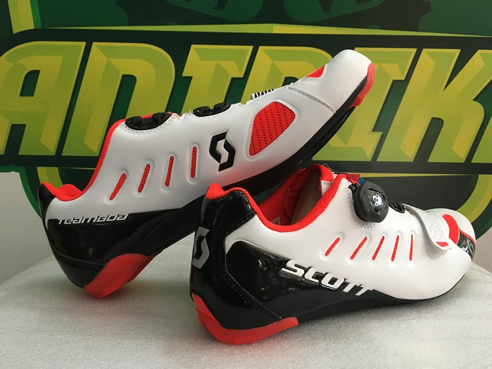 Ciclistas de granfondo e aventureiros vão achar o SCOTT Road Team Boa® um sapato perfeito para uma resposta de pedalada e conforto de longa distância. O sapato apresenta uma parte superior de microfibra de ajuste assimétrico elegante e um ajuste adaptável com um botão Boa® IP1 no topo. Combinado com uma cinta de ajuste anatómica inferior, articula-se para melhor encaixar na forma do pé do ciclista. Para suporte exclusivo durante todo o dia, a palmilha ErgoLogic possui suporte de arco e botão metatarsal. A sola composta por injeção possui um aumento na faixa de ajuste do encaixe com um índice de rigidez de 8.